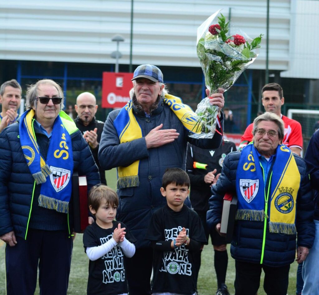 Iribar homenajeado por su 82 cumpleaños antes del amistoso entre veteranos SD San Ignacio y Athletic Club