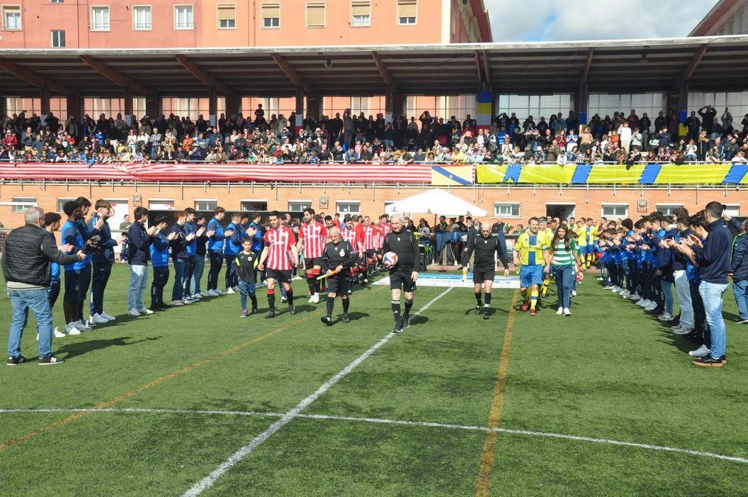 Antes de arrancar el duelo, se ha contado el ‘zorionak, zuri’ al Chopo, con una bufanda del San Ignacio y el escudo del Athletic, y se le ha entregado un ramo de flores. Mientras, se oían aplausos de los jugadores e integrantes de las categorías inferiores del club del barrio bilbaíno.