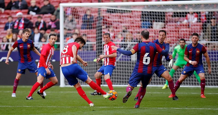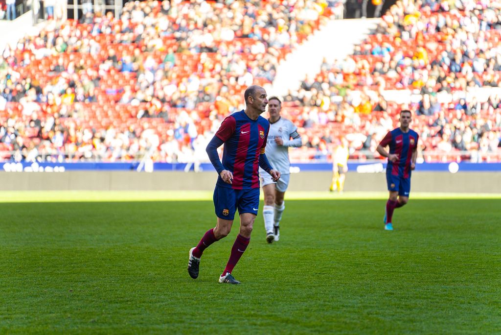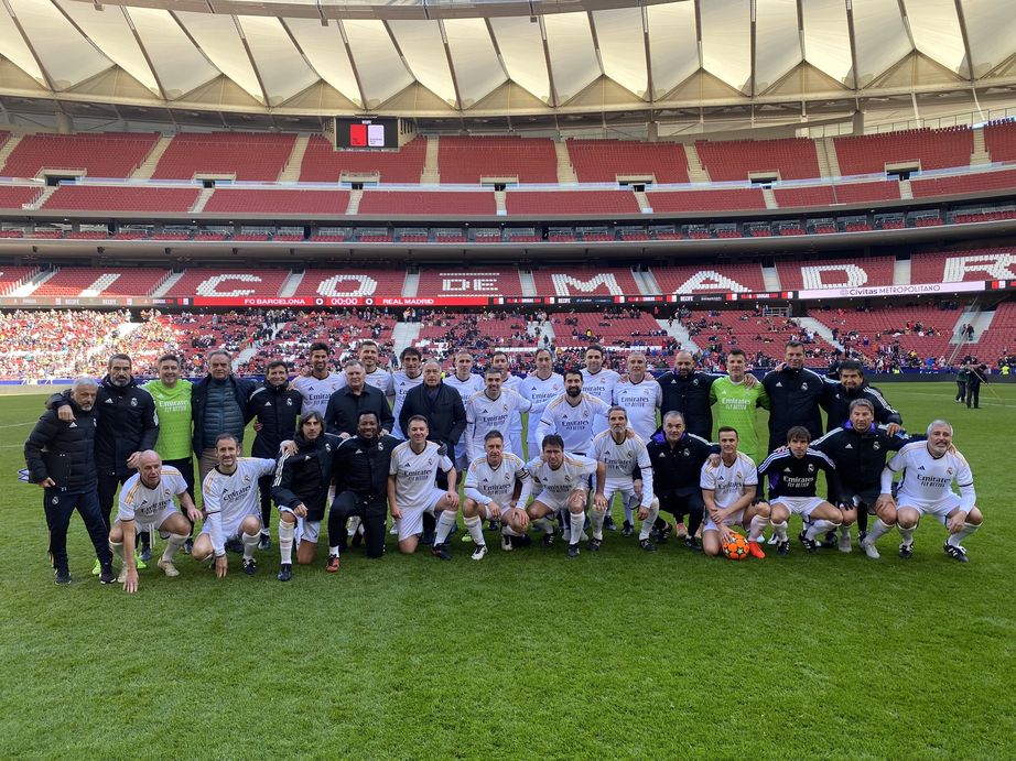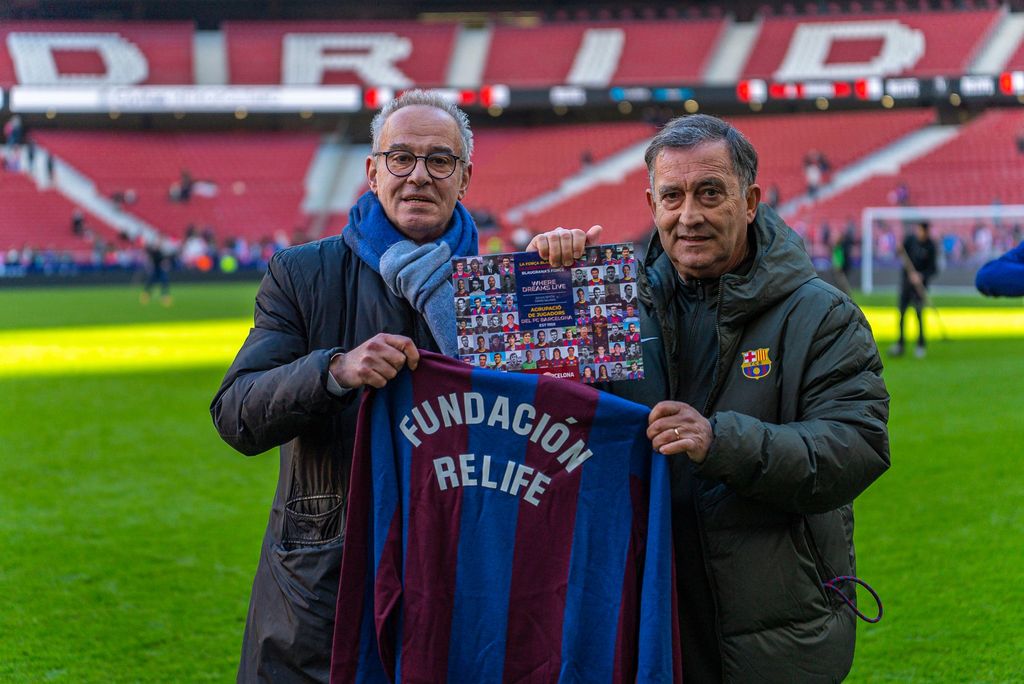 Madrid, 3 de enero de 2023. Por primera vez en la historia los equipos de las Asociaciones de veteranos Leyendas Atlético de Madrid, Real Madrid y F.C. Barcelona se unieron en el Estadio Cívitas Metropolitano de Madrid para disputar un espectacular triangular solidario «ROJA A LAS DROGAS» impulsado por la Fundación Relife y su presidente y exjugador internacional, Culé y «colchonero» Julio Alberto.