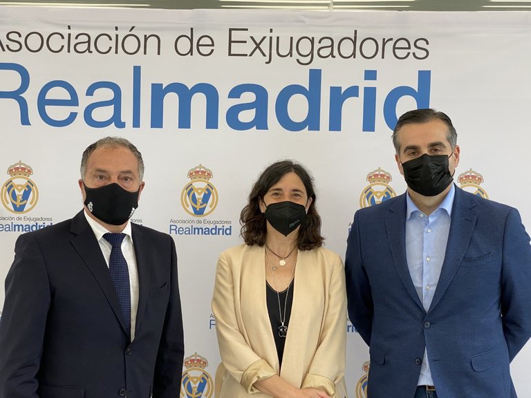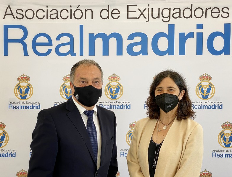 Madrid, 30 de abril de 2021. Liberbank, banco oficial del Real Madrid, ha firmado un convenio de colaboración con la Asociación de Exjugadores de Fútbol del Club, para prestar su apoyo a las iniciativas solidarias impulsadas por esta entidad. Una firma que se ha materializado este miércoles, 28 de abril, en la sede de la Asociación, con la presencia de Ana Echenique, directora de Relaciones Institucionales, RSC y Comunicación de Liberbank, y de Isidoro San José, en representación de la Asociación de Exjugadores de Fútbol del Real Madrid.