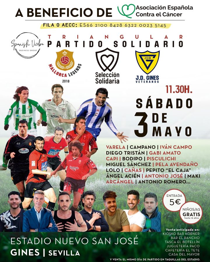 El torneo benéfico contó con tres equipos participantes: el ‘Mallorca Legends’, la Selección Solidaria Andaluza (entrenada por el periodista Ángel Acién) y el equipo de veteranos de la Juventud Deportiva Gines, cuyos jugadores quisieron colaborar así con esta importante causa.