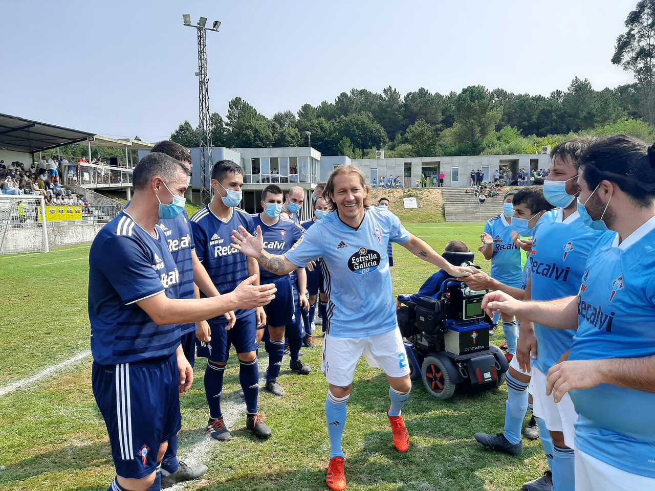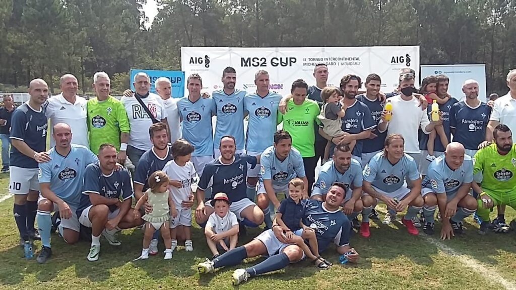 Mondariz (Pontevedra), 23 de agosto de 2021. Los veteranos del RC Celta de Vigo, liderados por Míchel Salgado, celebraron en Mondariz un partido amistoso con los veteranos del equipo local en A Lagoa. Un encuentro que finalizó con un 3-0 favorable para los celeste que dirige Moncho Carnero.