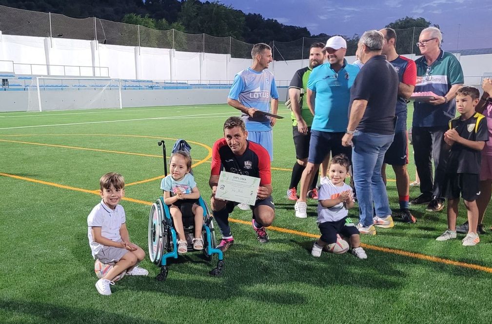Alcalá de los Gazules (Cádiz), 20 de junio de 2023. La Asociación de veteranos de la Balona (Averbal) se desplazó el pasado sábado a la localidad gaditana de Alcalá de los Gazules para disputar un partido benéfico y solidario con los veteranos del Rayo Alcalá para ayudar a la pequeña Marta, una niña de Chiclana de 3 añitos y que sufre de atrofia espinal tipo 1.