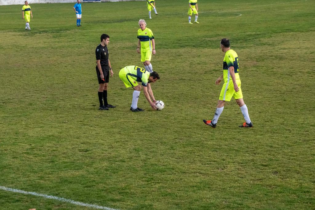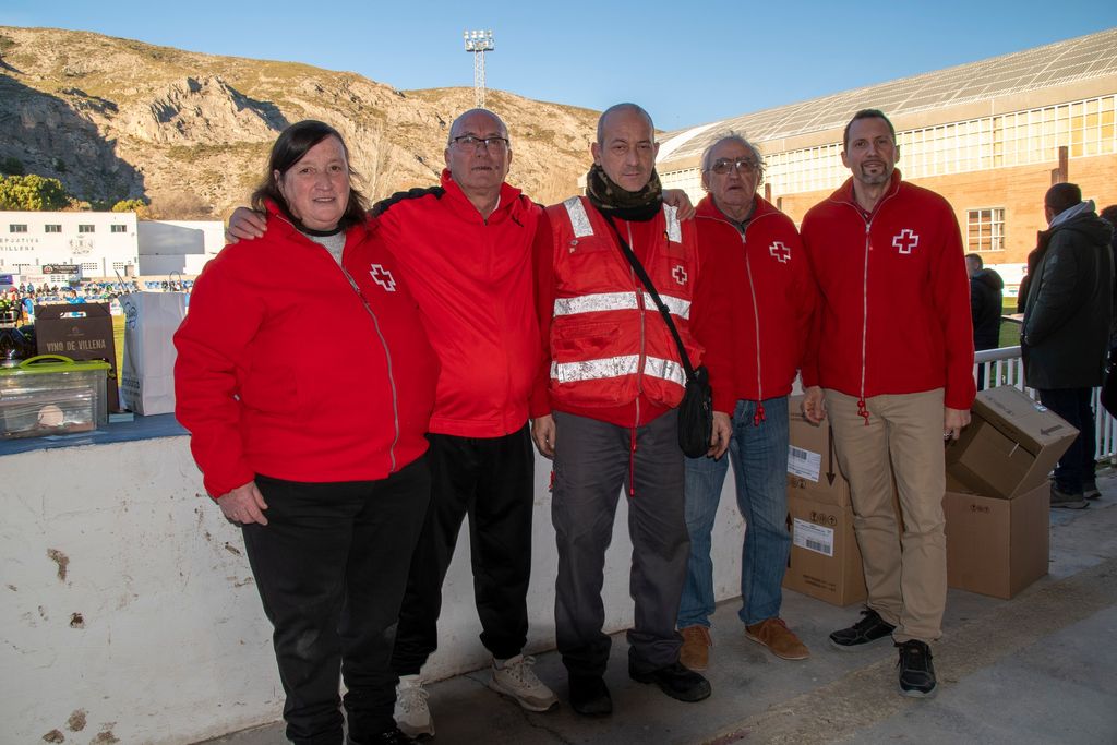 Villena (Alicante), 19 de enero de 2023. El equipo de Veteranos del Elche CF se desplazó hasta la localidad de Villena para disputar un partido amistoso de futbol benéfico junto a los veteranos del Villena CF para recaudar productos de higiene infantil y productos de limpieza a beneficio de Cruz Roja española de Villena.