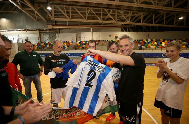 Los exfutbolistas profesionales Armando y Oli acudieron a la cita con varios regalos para celebrar esa igualdad latente en el ambiente y donarlas a la SAMO que intenta hacer cosas grandes, granito a granito. El lateral cedió una elástica de su etapa en el Dépor, y el delantero hizo lo propio con dos camisetas, una del Cádiz y otra del Barça.