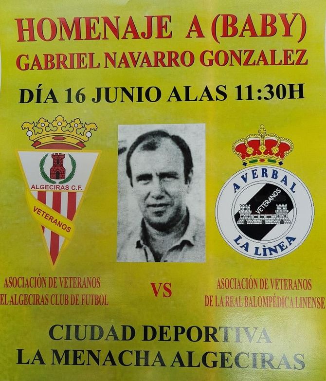 Algeciras, 16 de junio de 2019. La Asociación de Veteranos del Algeciras Club de Fútbol organizó el pasado domingo un partido homenaje a Gabriel Navarro González, conocido como “Baby”, quien fue entrenador del cuadro algecirista y de la Real Balompédica Linense, entre otros equipos.