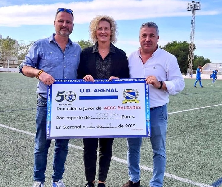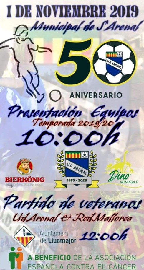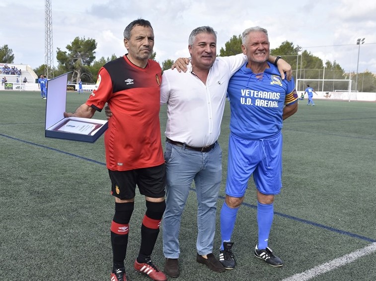 El Arenal (Mallorca), 1 de noviembre de 2019. Los veteranos del RCD MALLORCA acudieron a la cercana localidad de El Arenal para disputar un evento solidario con doble finalidad. Por un lado sirvió para celebrar el 50 aniversario del club vecino, la UD Arenal, y por otro para disputar un partido de fútbol entre los veteranos de ambos Clubes con el objetivo de recaudar fondos para la AECC (Asociación Española Contra el Cáncer) Balear.