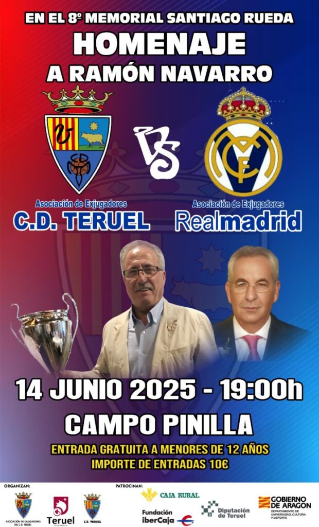 Teruel, 17 de junio de 2025. El pasado sábado en el Estadio Pinilla, a las 19 horas se disputó el «8º Memorial Santiago Rueda», rindiendo un año más un homenaje a Ramón Navarro, quién fuera presidente del Club Deportivo Teruel durante 13 años.