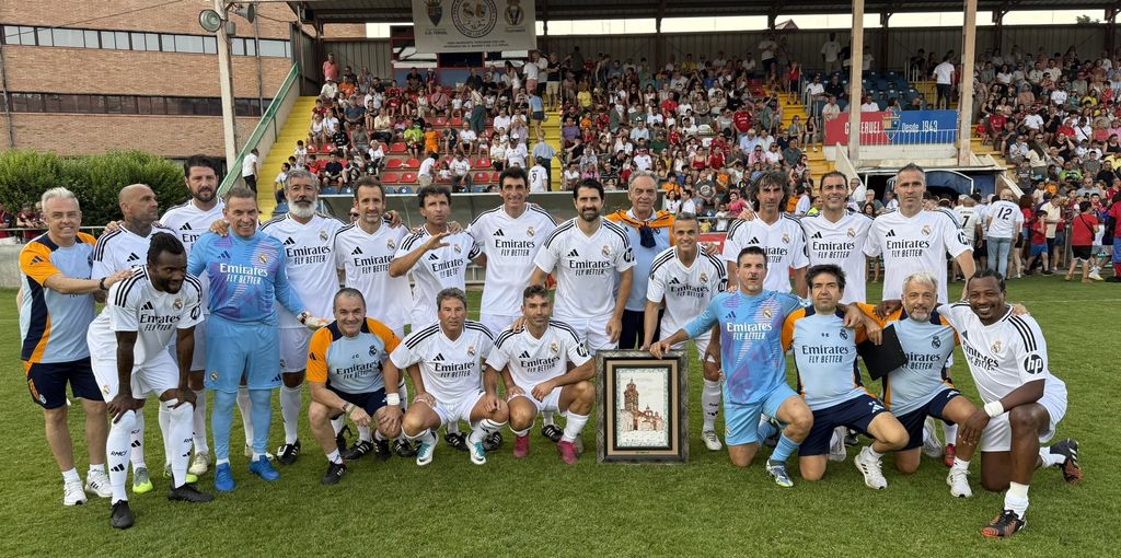 En el césped se pudo ver un buen espectáculo de futbol veteranos cuyo resultado acabó con victoria de los madridistas por 1 a 4 que contó con exjugadores como el turolense Luis Milla, Paco Buyo, Emilio Amavisca, Rubén de la Red, Kike Velasco y Raúl Bravo, entre otros.
