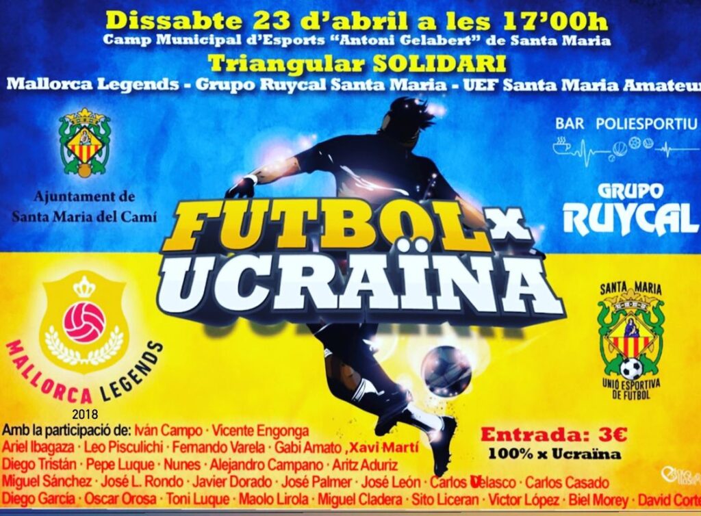 Santa María (Mallorca), 23 de abril de 2202. El pasado sábado 23 de abril en el campo municipal ‘Antoni Gelabert’ de Santa Maria tuvo lugar la disputa de un encuentro triangular de futbol solidario que contó con la participación de la Asociación Mallorca Legends, del equipo del Grupo Ruycal Santa Maria y el UEF Santa Maria Amateur.