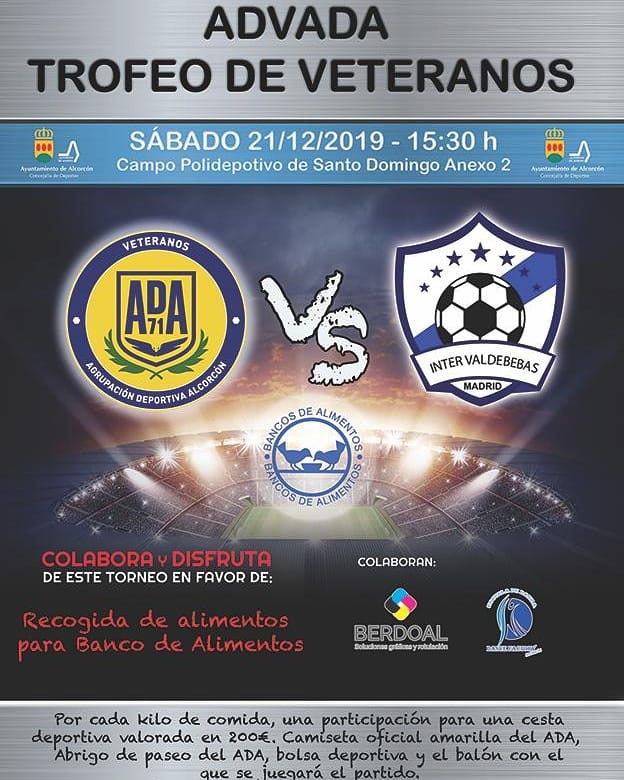 Alcorcón, 23 de diciembre de 2019. El pasado sábado 21 la Asociación de Veteranos de la AD Alcorcón, organizó y disputó su Torneo Solidario de Navidad para recaudar alimentos no perecederos a favor del Banco de Alimentos de Madrid.