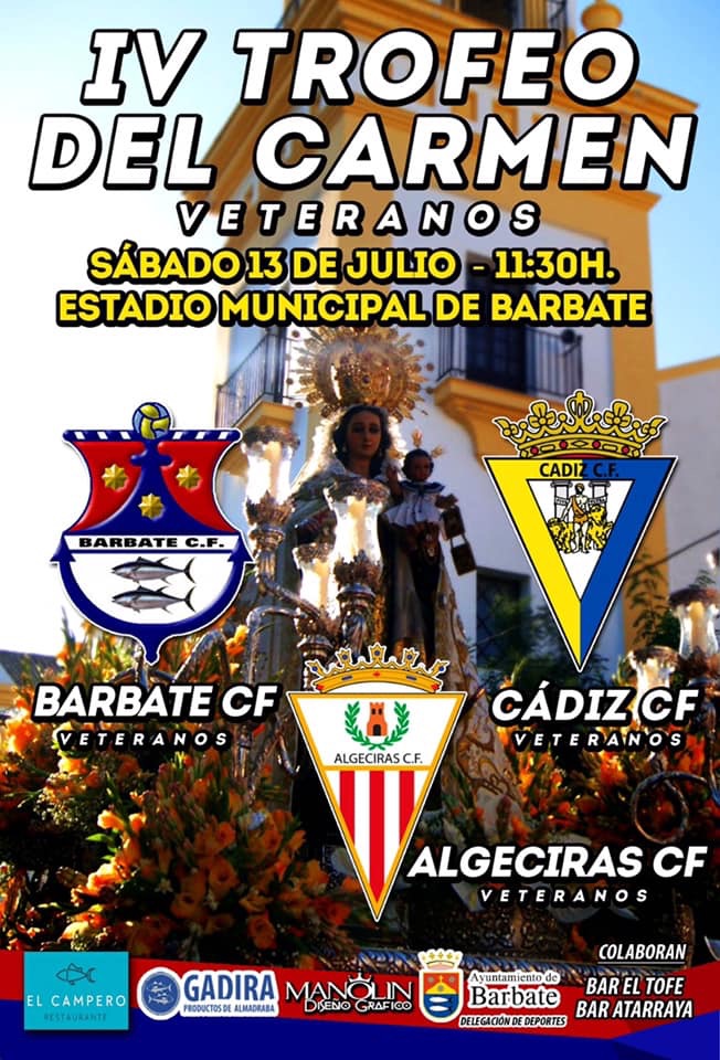 Barbate (Cádiz), 13 de julio de 2019. El pasado sábado 13 de julio, aprovechando la festividad del Carmen, se disputaba en la localidad gaditana de Barbate un triangular de veteranos con la participacion del Algeciras CF, el Cádiz CF y el Barbate CF.