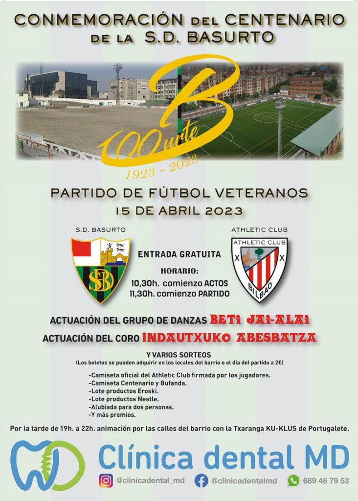 Los actos del centenario se iniciaron a las 10:30 de la mañana, mientras que el partido de viejas glorias tuvo su inicio una hora más tarde. La entrada fue gratuita. Hubo actuación del grupo de danzas Beti Jai-Alai y del coro Indautxuko Abesbatza. También hubo varios sorteos, como la camiseta oficial del Athletic firmada por los jugadores o la camiseta y la bufanda del centenario del Basurto, así como lotes de productos, una alubiada y otros obsequios.