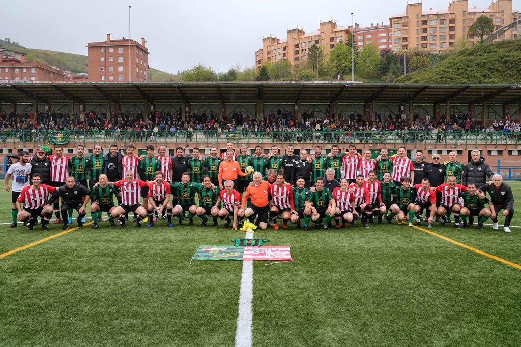 Bilbao, 24 de abril de 2023. El campo de Iparralde de Basurto acogió el pasado sábado 15 de abril como acto de celebración del centenario de la SD Basurto, el partido entre los veteranos del club verdinegro y los del Athletic Club de Bilbao.