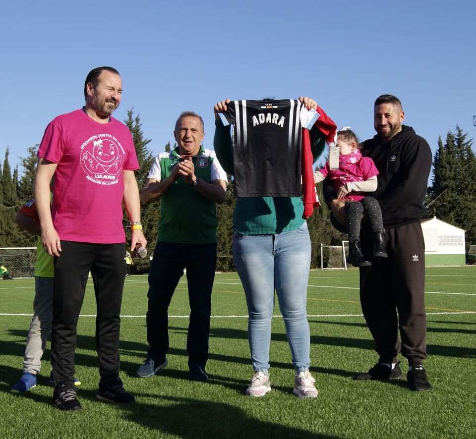 El triangular estuvo cargado de momentos emotivos. El equipo de la Asociación de Veteranos de la Balona (AVERBAL) entregó camisetas para estas dos pequeñas jimenatas que atraviesan delicados momentos de salud y tanto el alcalde de Jimena, Fran Gómez, como la presidenta de la Asociación, Laura Cuevas, expresaron su agradecimiento a organizadores y participantes.