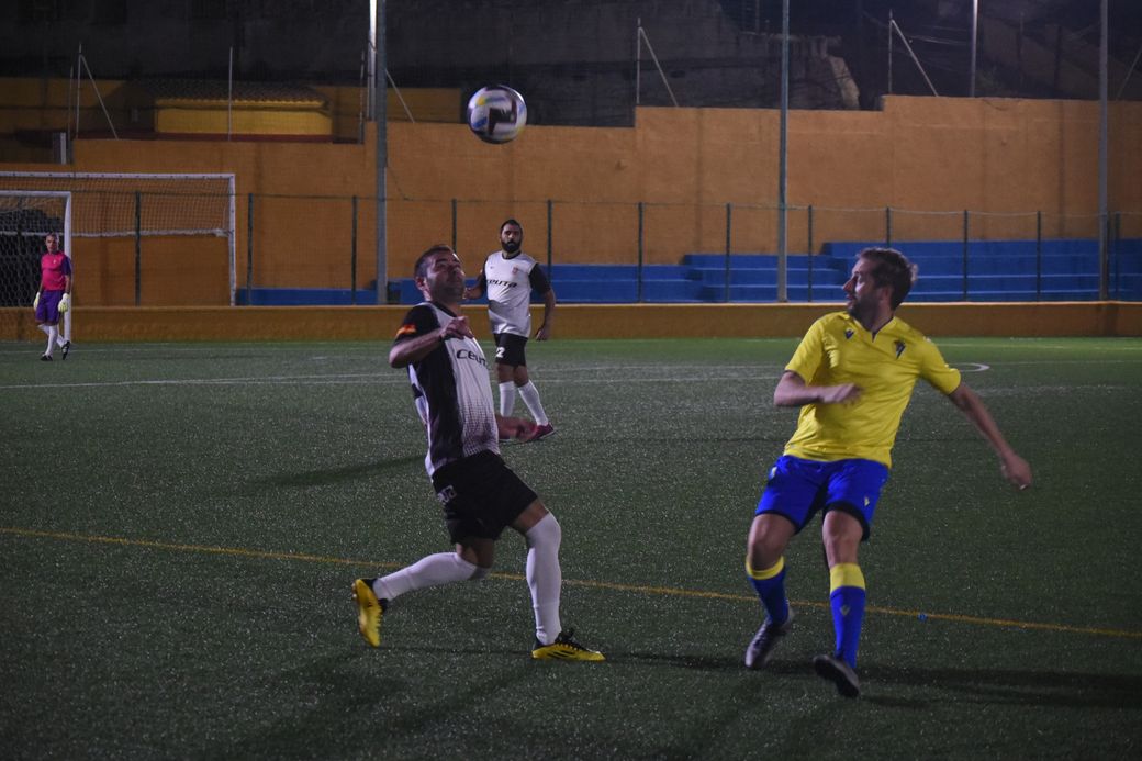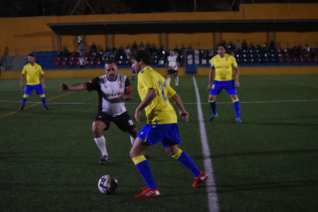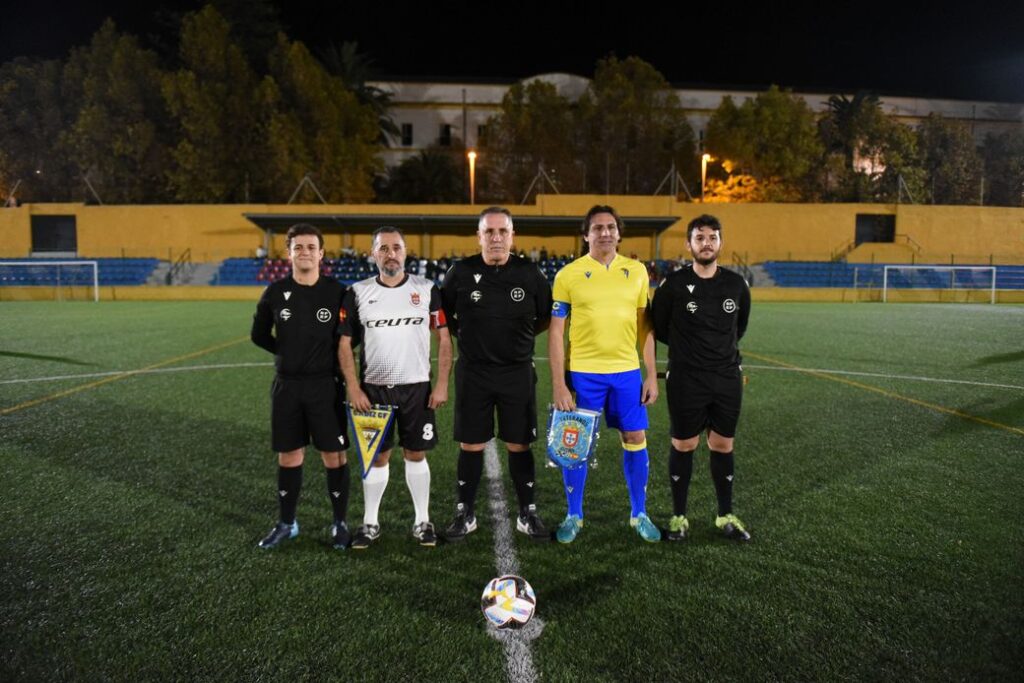 Los Veteranos de Ceuta y las viejas glorias del Cádiz CF terminaron su enfrentamiento con empate a cuatro goles. En el bando cadista se alinearon el exjugador del Ceuta Manolo Pérez y el ex del Ceutí de fútbol sala Fran Cortés.