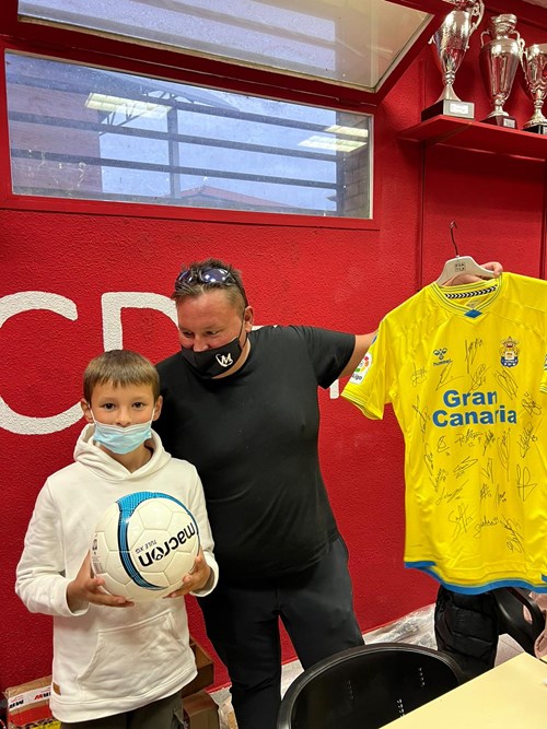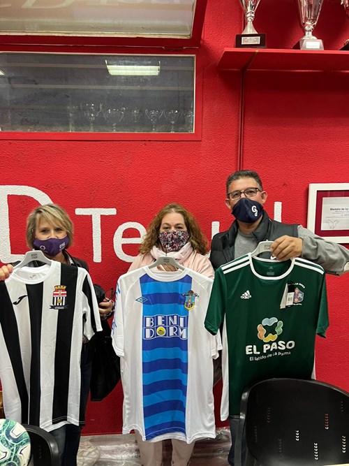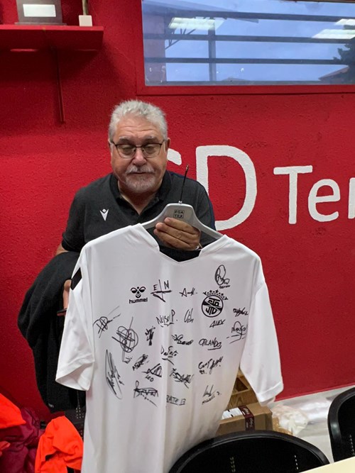 En el descanso del encuentro se realizó un sorteo solidario de camisetas, balones, sudaderas y material deportivo donado a la asociación de veteranos turolense para que pudieran recaudar todavía más fondos. En este apartado hay que mencionar la colaboración de la Delegación de La Palma de la Federación de Fútbol, que consiguió que numerosos clubes palmeros, como La Rosa y Atlético Paso (municipio de El Paso), Argual femenino y Los Llanos (municipio de Los Llanos de Aridane), Mensajero y Tenisca de la capital, Santa Cruz de La Palma y Real Unión Tacuense Femenino, además del CD Tenerife y la UD Las Palmas como máximos estandartes del fútbol canario, aportaran sus camisetas. También quisieron enviar la suya y aportar su granito de arena varios clubes de la península como la la SD Huesca, Casademont Zaragoza, CF Benidorm, FC Cartagena, Hércules CF, UD Levante o Albacete Balompié, la mayoría de ellos a través de sus respectivas Asociaciones de veteranos.