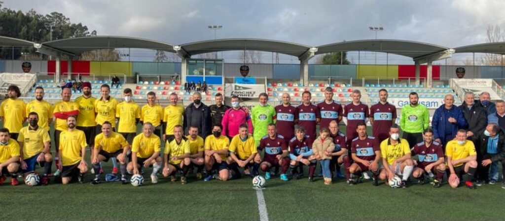 Redondela (Pontevedra), 26 de diciembre de 2021. Los veteranos de Celta de Vigo y ex jugadores del emblemático club de base redondelano Casa Paco 81 celebraron un partido en el campo de Santa Mariña con ocasión del 40º aniversario del equipo de la localidad pontevedresa.