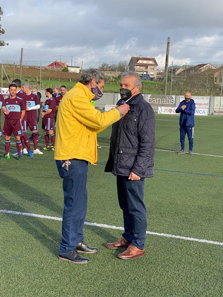 Los jugadores de la base de Casa Paco le hicieron el pasillo a los equipos y se le entregó la insignia del club a Carlos Cabanas, unos de los artífices de la fundación de una entidad íntimamente ligada al Celta, ya que en ella comenzaron sus carreras jugadores como Pablo Couñago, Iago Bouzón o Mateo Míguez.