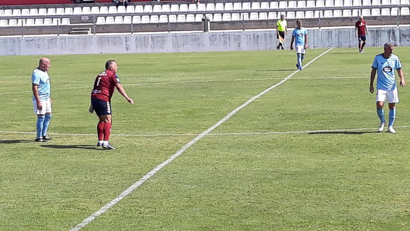Isla de Arosa (Pontevedra), 6 de agosto de 2022. El equipo de veteranos de la Agrupación de Antiguos Jugadores del RC Celta se proclamaron campeones del Torneo triangular solidario celebrado en el Estadio Salvador Otero de A Illa de Arosa, al golear 5-0 a los veteranos del Pontevedra y empatar 1-1 con el Céltiga, equipo anfitrión y organizador del evento que tampoco pasó del empate a 0 en su primer partido con el Pontevedra.