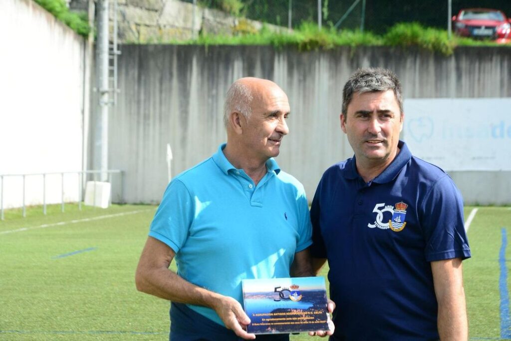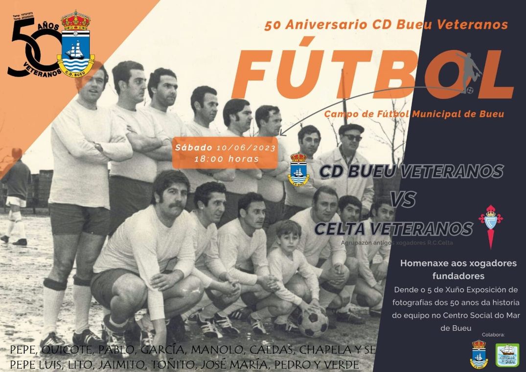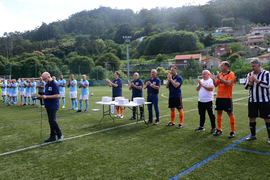Entre otros actos previos al partido que dieron a conocer su historia, el Club Deportivo Bueu celebró sus bodas de oro con un homenaje a su primera plantilla con un partido contra el Celta Veteranos que hizo las delicias de todos los presentes.