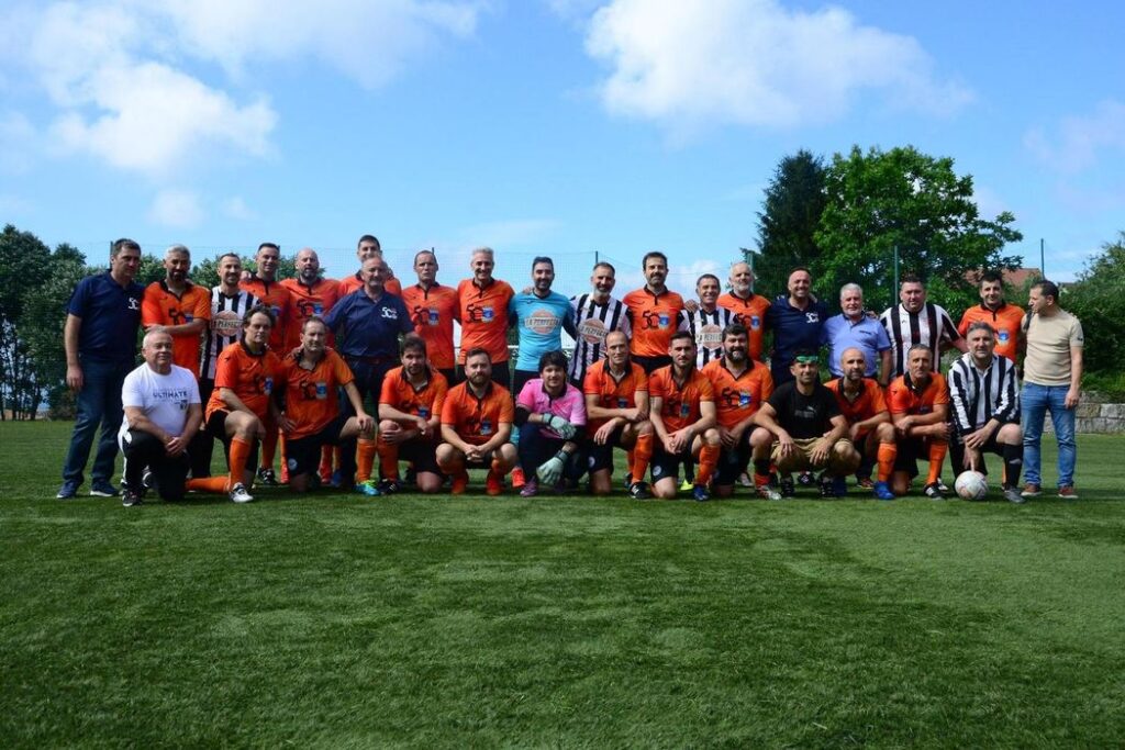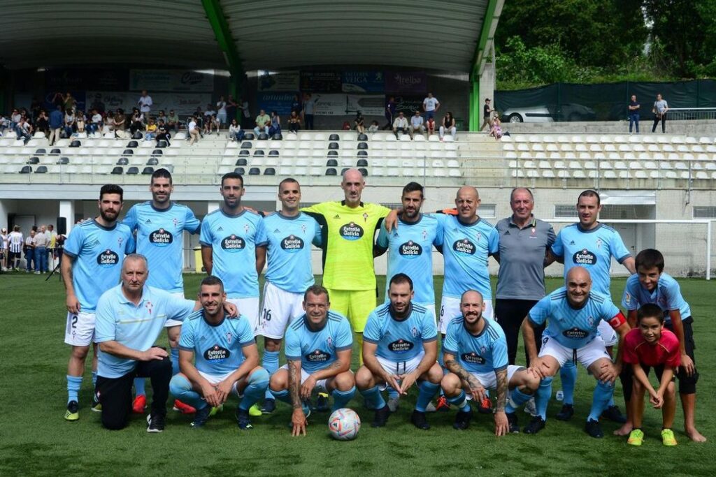 Bueu (Pontevedra), 19 de junio de 2023. Con motivo del 50 aniversario del CD Bueu, el equipo de veteranos de la Agrupación de antiguos jugadores del RC Celta de Vigo se desplazó el pasado sábado 10 de junio al Campo Municipal A Graña de Bueu para disputar un amistoso contra los Veteranos del equipo de la localidad.