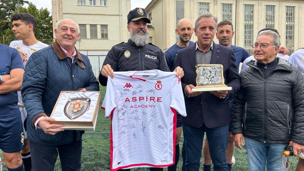 León, 28 de octubre de 2023. La Policía Local de León y la Cultural y Deportiva Leonesa de Veteranos se unieron en un partido para celebrar el día del patrono de la Policía Local, San Marcelo, y el Centenario de la Cultural Leonesa. Algunos futbolistas jugaron una parte con cada equipo, al haber pertenecido en su momento a la Cultural e integrar en la actualidad al cuerpo de la Policía Local. El choque se disputó en el C.H.F.