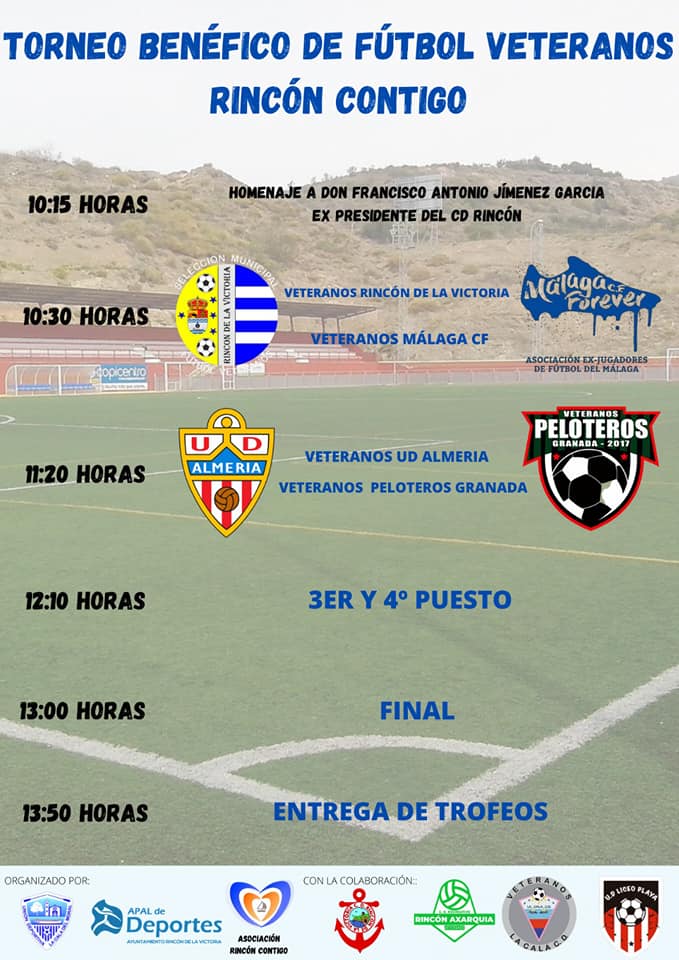 Los veteranos del Málaga CF acudieron a la cita solidaria con ex-jugadores profesionales de la talla de Koke Contreras, Catanha, De los Santos, Valcarce, Calatayud, Juan Rodríguez, Nacho y compañía que hicieron las delicias de los asistentes y demostraron que «el que tuvo retuvo». Se llevaron el torneo benéfico imponiéndose en el primer partido del día al equipo de veteranos del Rincón de la Victoria por un contundente 8-0 y en la final al conjunto de veteranos del Peloteros Granada por un apretado 2-1.