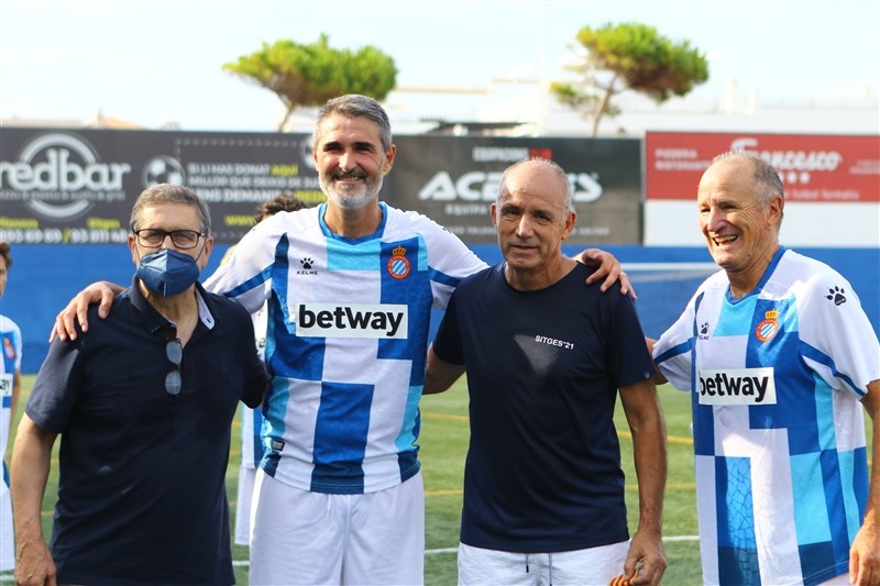 Sitges (Barcelona), 13 de septiembre de 2021. En la mañana del domingo los Veteranos del RCD Espanyol de Barcelona han participado en un homenaje de piel de gallina y más que me merecido a su compañero y amigo Fernando Molinos disputando un triangular en Sitges.