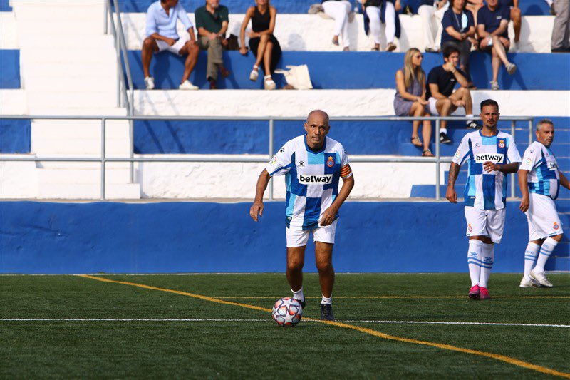A sus 71 años, el emblemático ex jugador del Espanyol disputó un emotivo triangular de fútbol de veteranos organizado por la Fundació Veterans de Sitges (FVS).