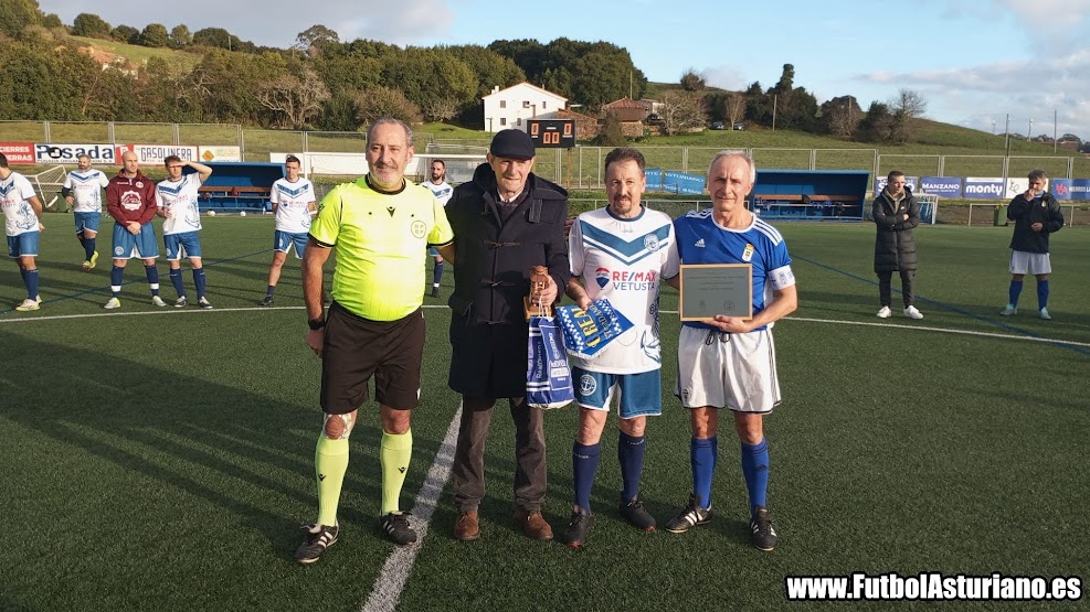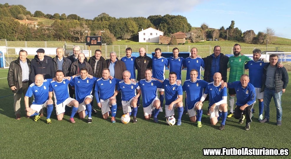 Los Veteranos del Real Oviedo presentes en el Trofeo Ayuntamiento de Gozón en el que se homenajeaba al exjugador Luis María García Antuña