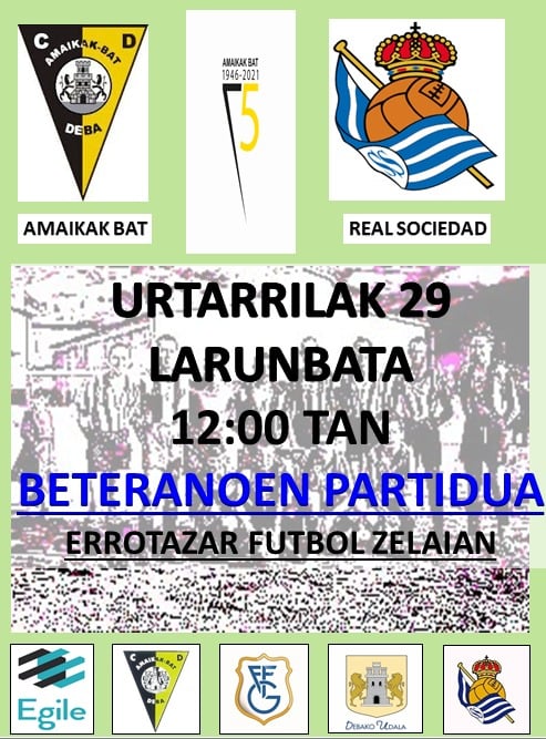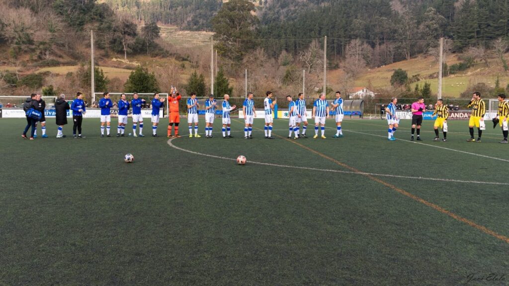 Deba (Guipúzcoa), 1 de febrero de 2022. El pasado sábado, y como uno más de los eventos que el Club Amaikak Bat de la localidad guipuzcoana de Deba está organizando por la celebración de su 75 aniversario, se disputó un interesante partido entre los equipos de veteranos del club debarra y los de la Real Sociedad de San Sebastián.