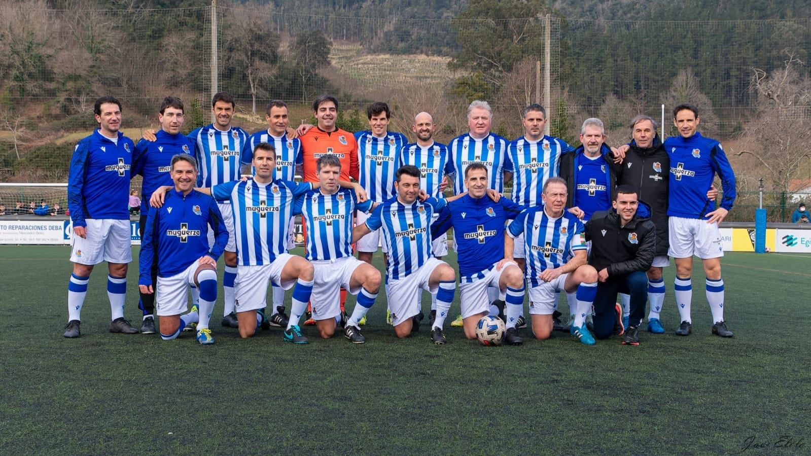 El equipo de Veteranos de la Real Sociedad se exhibe en el 75 aniversario del Amaikak Bat