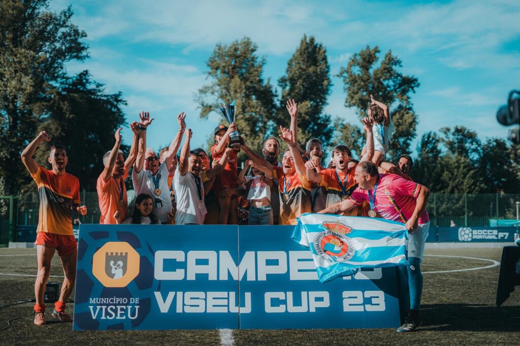 Viseu (Portugal), 18 de julio de 2023. El equipo de fútbol-7 de la Asociación de Veteranos de la Real Sociedad Gimnástica de Torrelavega se desplazó a Portugal el pasado fin de semana para disputar en el Complejo Deportivo de Viseu la prestigiosa «Viseu Cup» organizada por Socca Football 7.