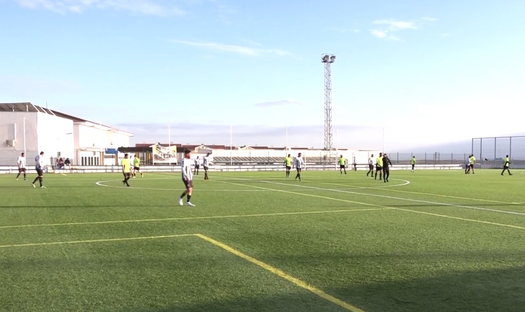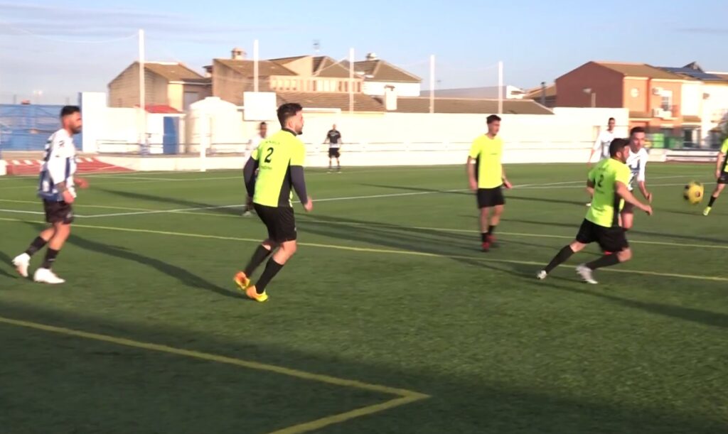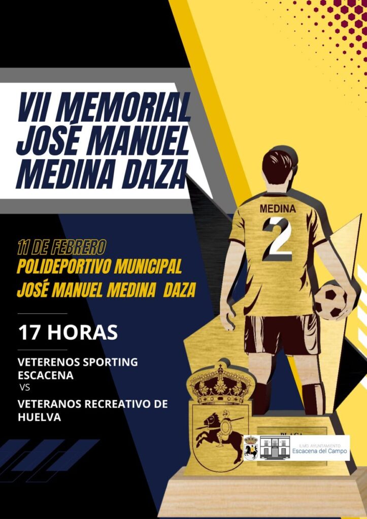 Escacena del Campo (Huelva), 18 de febrero de 2023. El campo de fútbol municipal de Escacena del Campo ha acogido, un año más, una nueva edición del Memorial José Manuel Medina Daza. Una cita en la que, en esta ocasión, ha enfrentado de forma amistosa a los veteranos del Recreativo de Huelva con los del Sporting de Escacena.