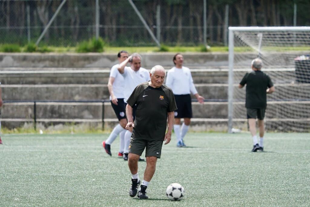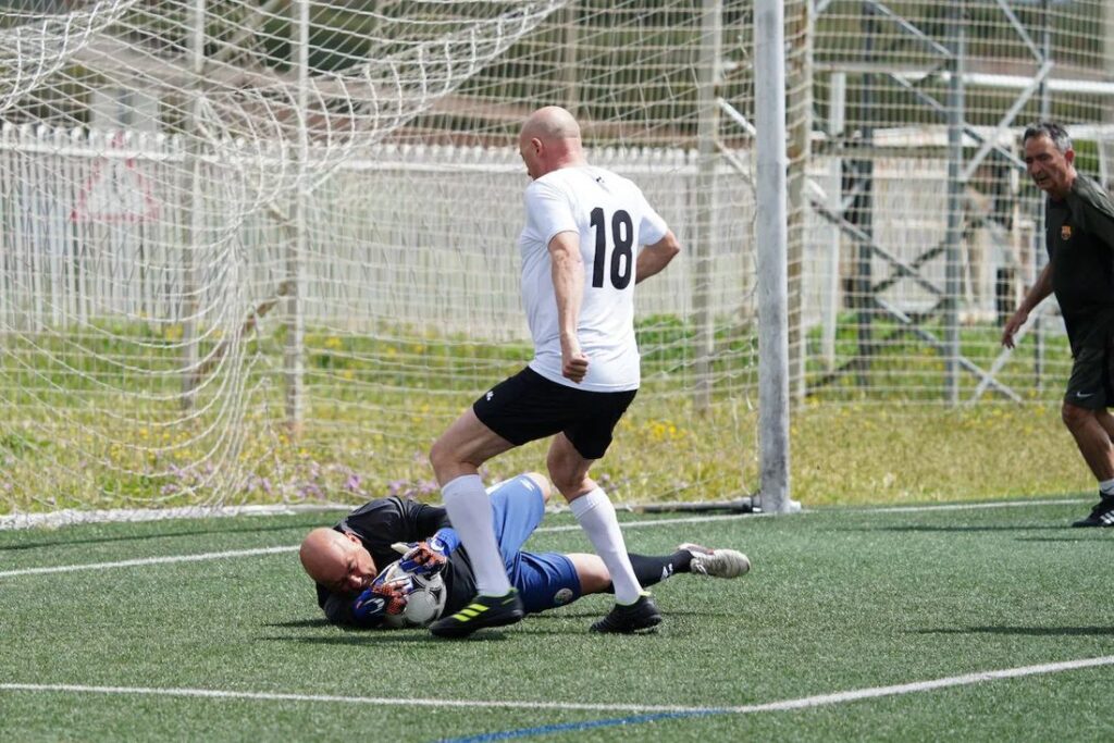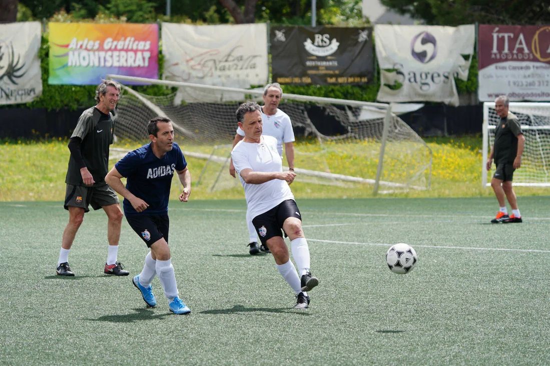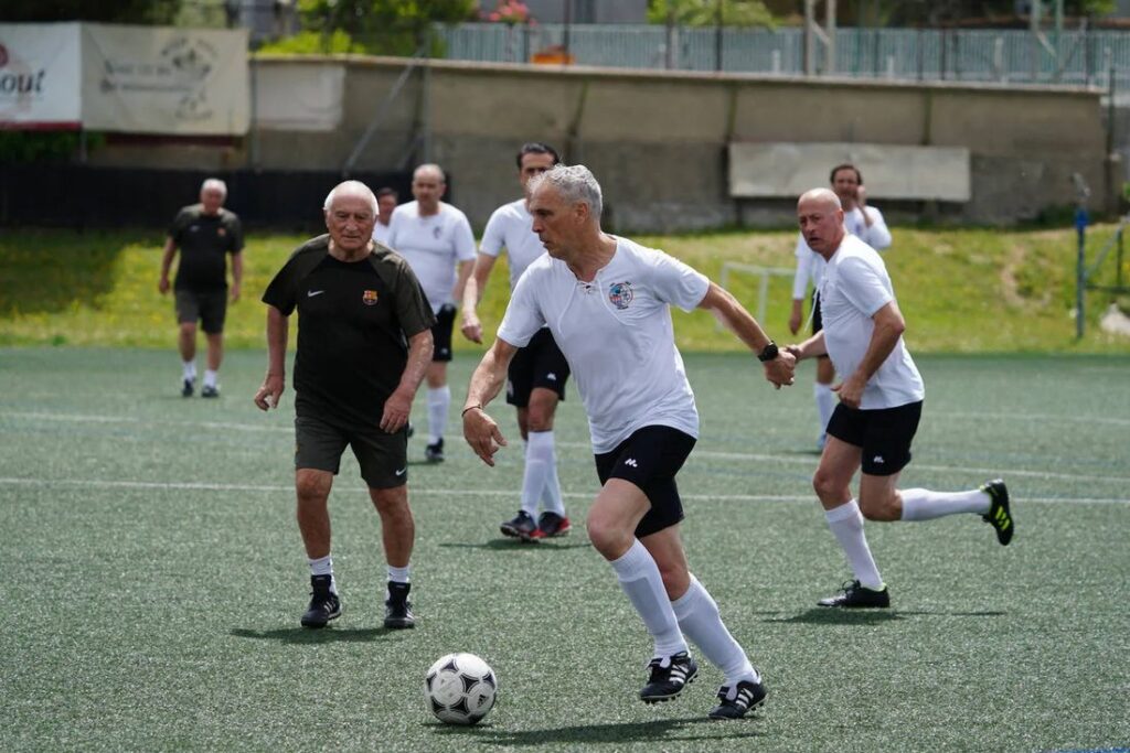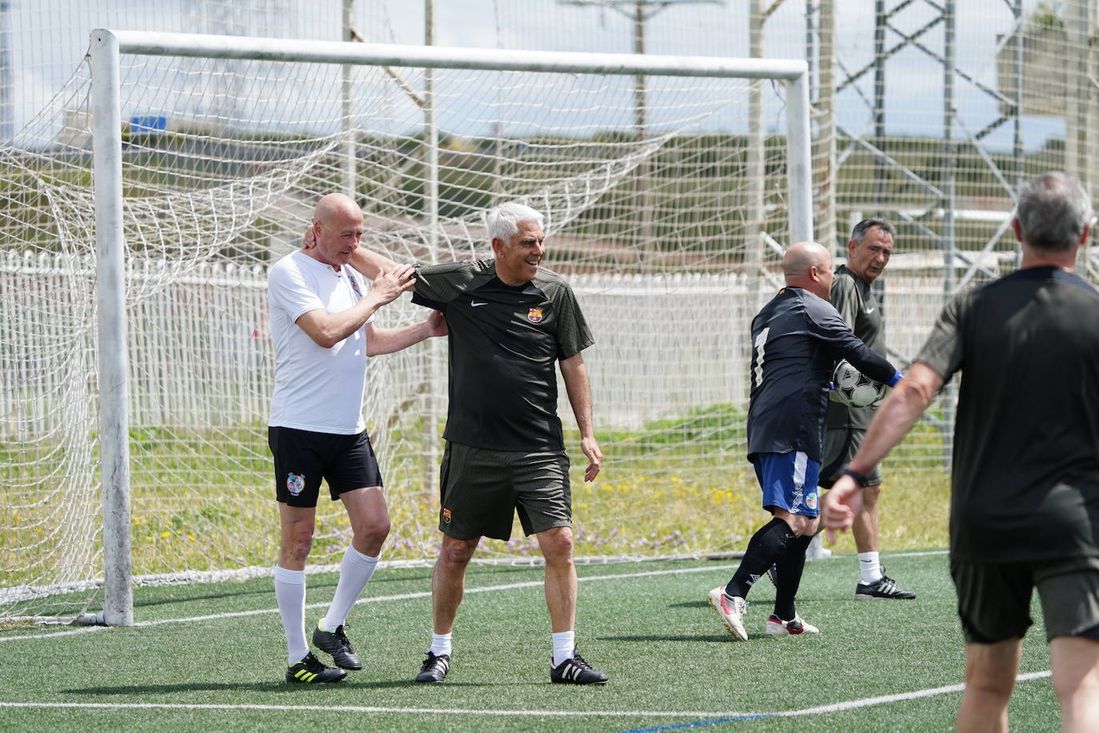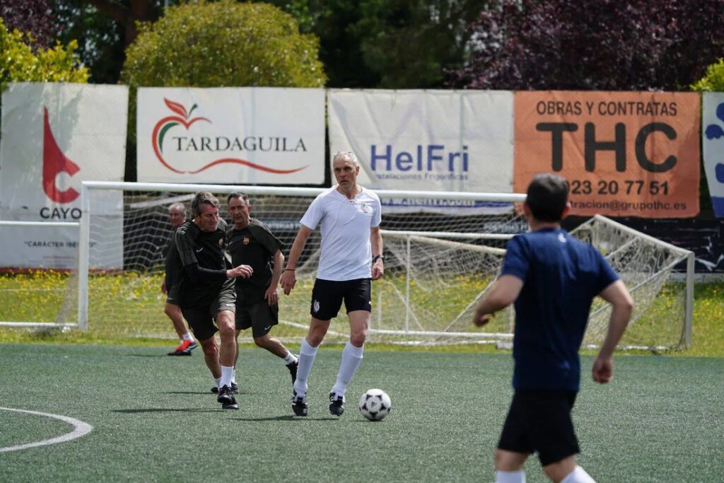 Salamanca, 19 de mayo de 2024. Para conmemorar los 50 años del primer ascenso a Primera División de la Unión Deportiva Salamanca (19 de mayo de 1974), el equipo de los veteranos de la UDS ha disputado el pasado domingo en el campo de fútbol «El Tori» un encuentro contra el equipo sénior de los veteranos del FC Barcelona.