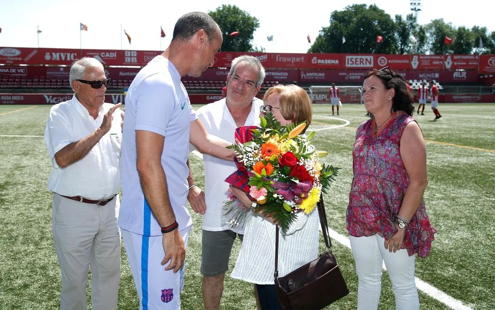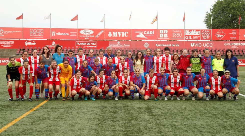 Veteranos y veteranas del FC Barcelona en la fiesta del centenario de la UE Vic