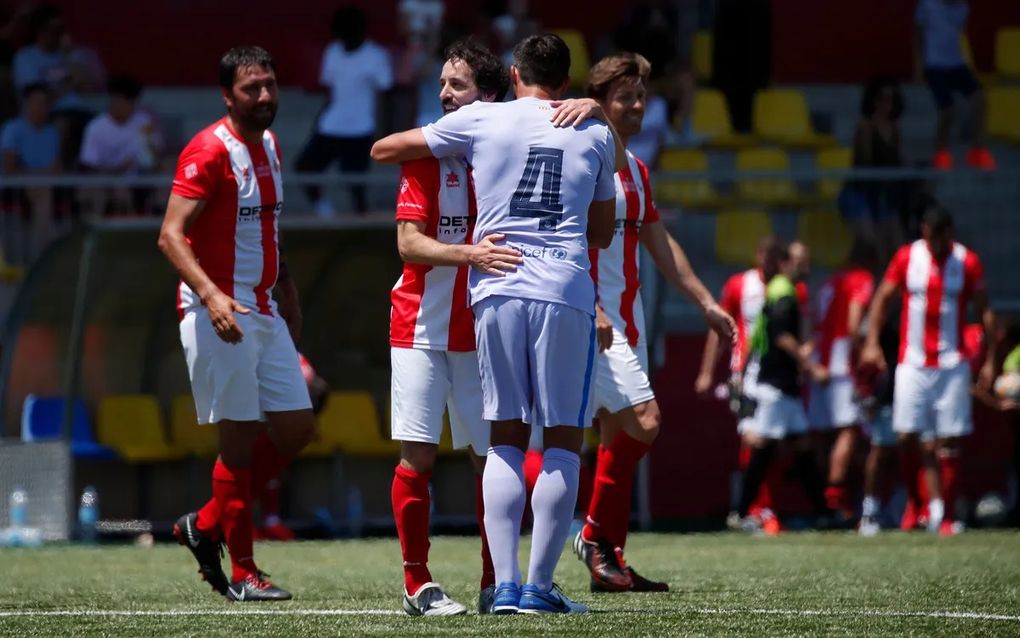 Las altas temperaturas volvieron a ser protagonistas de estos enfrentamientos. El primer partido, el de los veteranos, fue a las 12 del mediodía. Un amistoso cuyo resultado del partido fue de 3 a 4 a favor del equipo de la Agrupación con un hat-trick de Jordi Martínez y un gol de Jordi Ferrón.