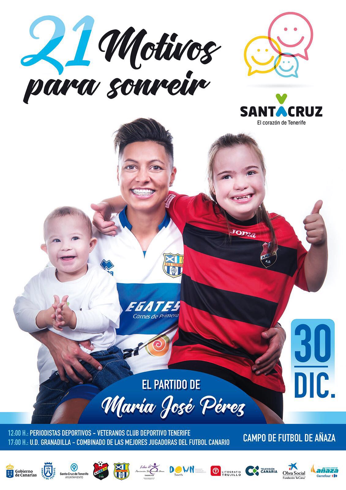 Santa Cruz de Tenerife, 30 de diciembre de 2017. La Asociación de Antiguos Jugadores del CD Tenerife participó en el encuentro benéfico “21 MOTIVOS PARA SONREÍR”, a favor del Síndrome Douw, que anualmente organiza la Jugadora del “Egatesa Tenerife Granadilla”, María José Pérez, en fechas navideñas.