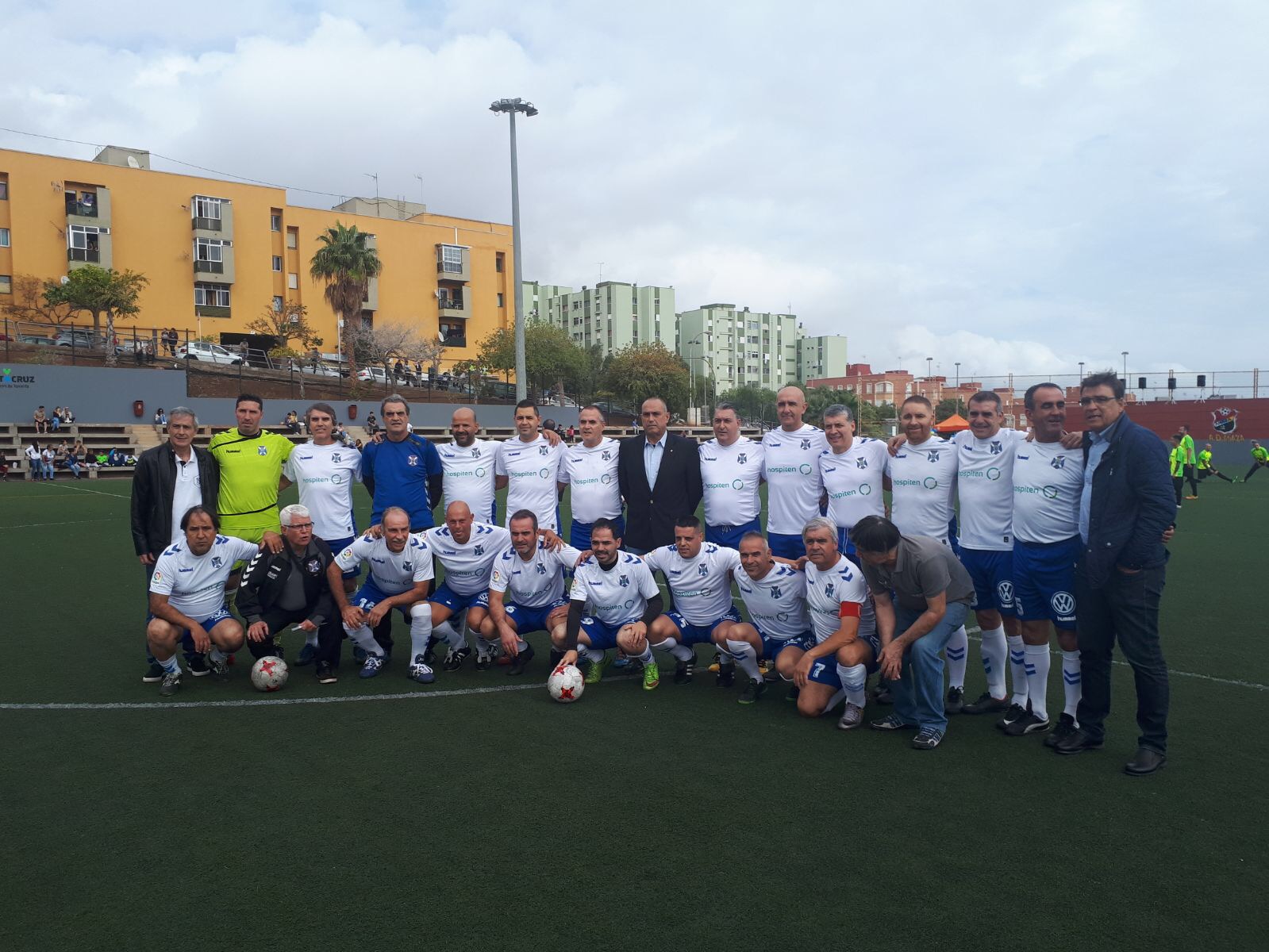 El partido se disputó en el Campo de Fútbol de Azáña, contra una Selección de Periodistas Deportivos de Tenerife, y concluyó con un apasionante empate a cuatro. El evento, apoyado por el Ayuntamiento de Santa Cruz, también fue retransmitido por la televisión pública canaria.