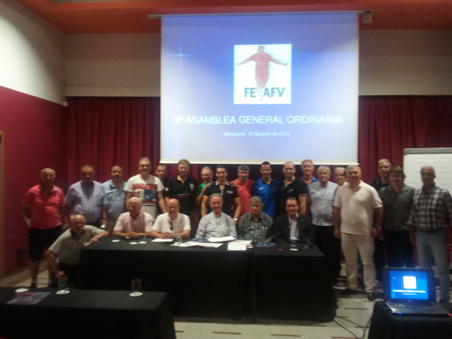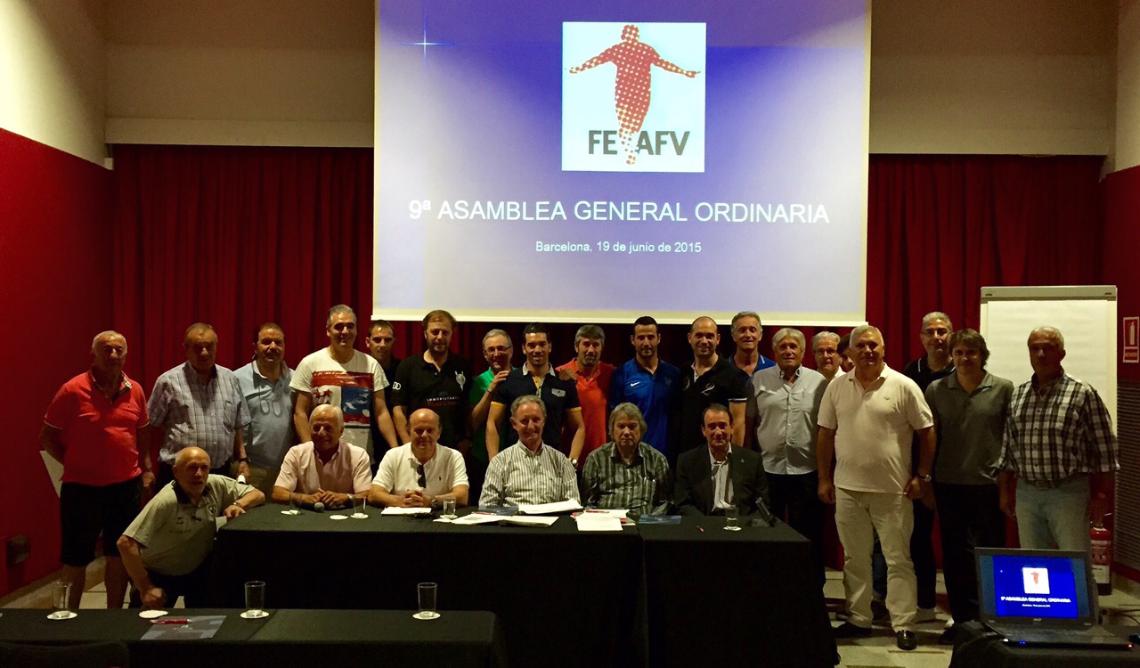 Barcelona, 19 de junio de 2015. La Federación Española de Asociaciones de Futbolistas Veteranos -FEAFV- celebró su 9ª Asamblea General Ordinaria anual. Una reunión en la que las asociaciones presentes aprobaron por unanimidad todos los puntos establecidos en el Orden del Día: