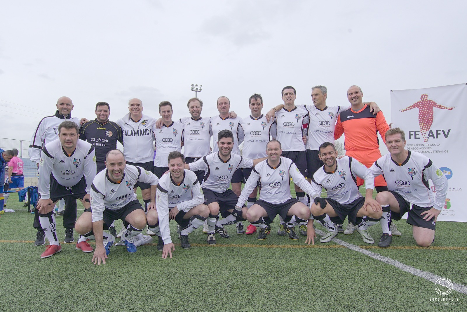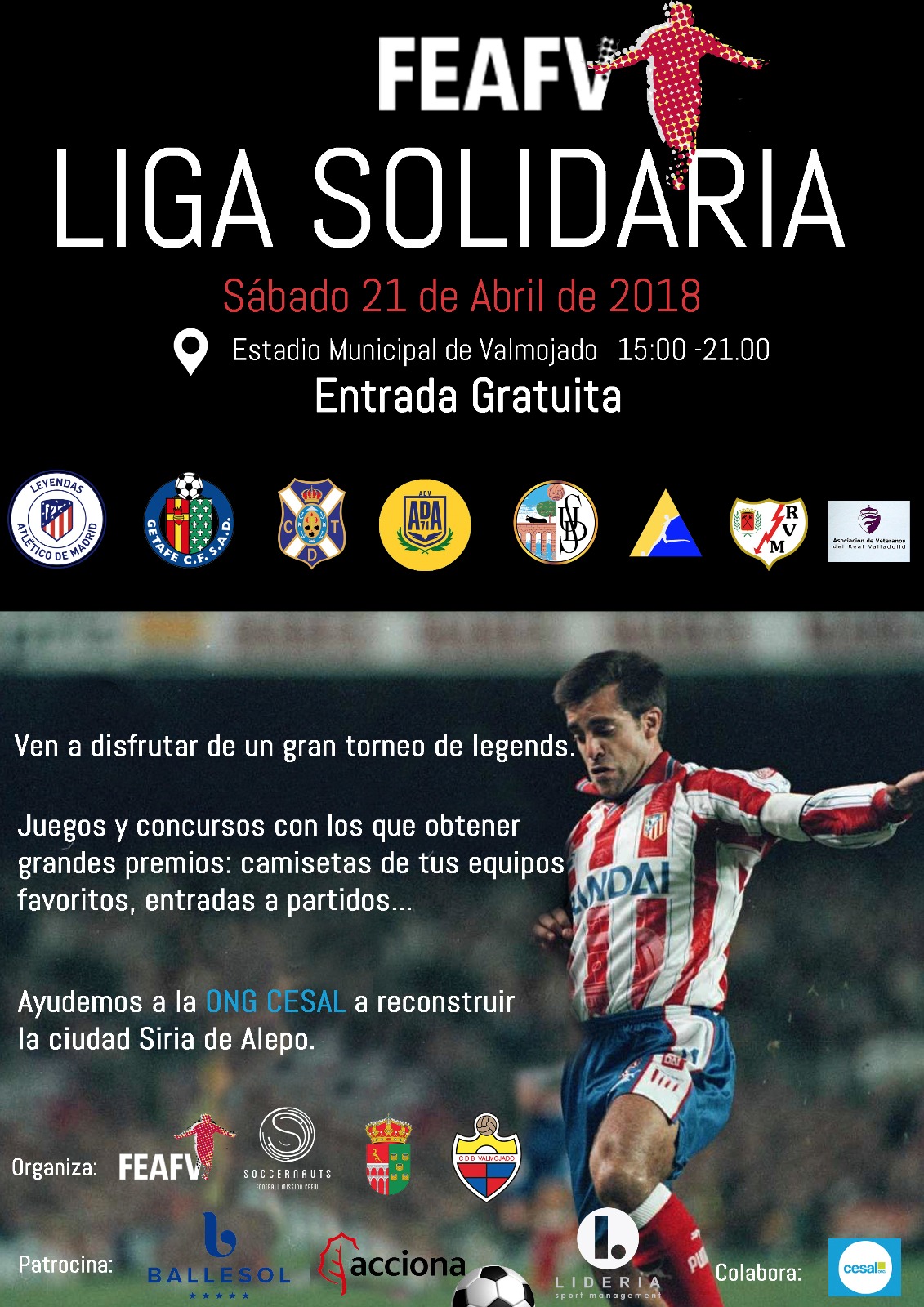 Valmojado (Toledo), 21 de abril de 2018. El equipo de Leyendas del Club Atlético de Madrid, se proclamó campeón de la Liga Solidaria FEAFV – Zona Centro, tras imponerse en la gran final al Real Valladolid en la tanda de penaltis.