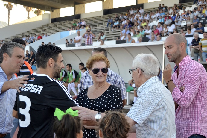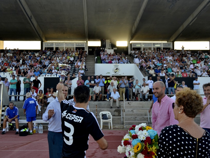 La línea de la Concepción (Cádiz), 24 de Agosto de 2014. La Asociación de veteranos de la Real Balompédica Linense, coincidiendo con la disputa del primer encuentro oficial del primer equipo, hizo entrega al jugador balon Javi Gallardo del trofeo al pundonor “Salvador Mota” de la temporada 2013/14.