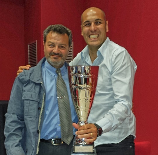 - CUERPO TECNICO RCD ESPANYOL CON TROFEO