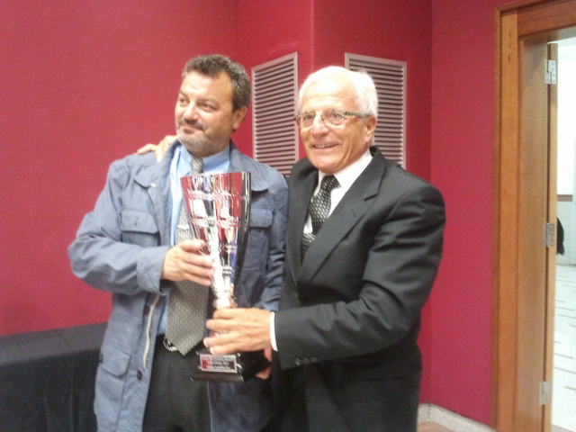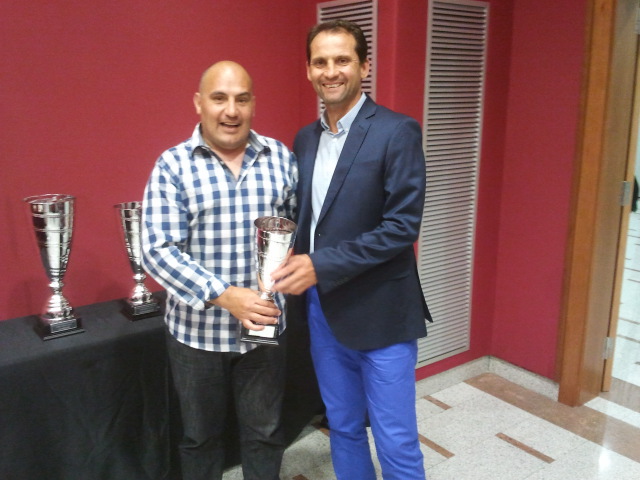 3º Clasificado – CD Benidorm. Trofeo entregado por Mike Sotos, hijo de quien fuera miembro fundador de la FEAFV como representante del Elche -Miguel Sotos-, fallecido durante la presente temporada. De este modo, entregando el trofeo al representante de la zona Levante (donde su padre participó como futbolista durante muchos años), Mike Sotos junior y el resto de comensales volvieron a recordar al compañero fallecido.