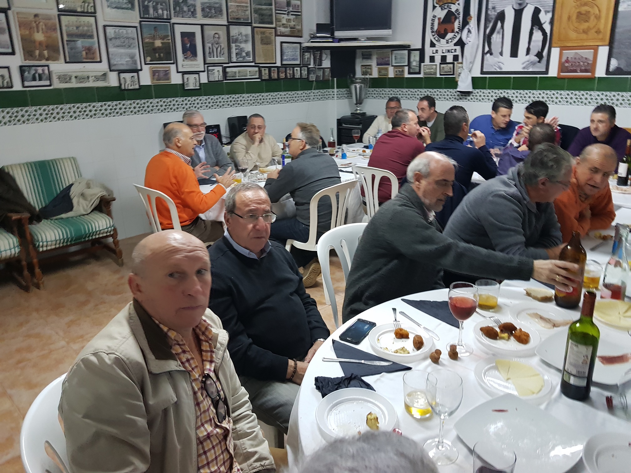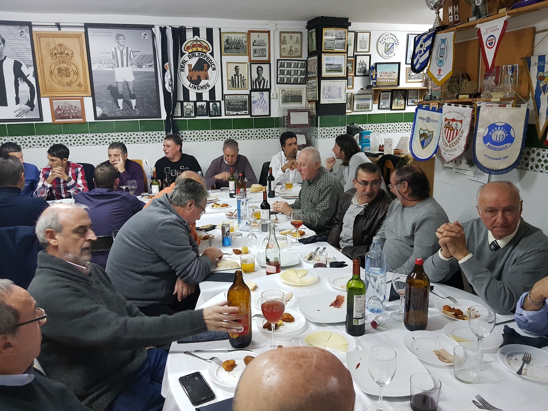 La Línea de La Concepción (Cádiz), 17 de diciembre de 2017. Medio centenar de veteranos de la Balona de distintas épocas celebraron en la sede social de la entidad, sita en los bajos del Estadio Municipal Linense, un acto de convivencia para celebrar las fiestas navideñas y compartir los mejores deseos para el futuro.