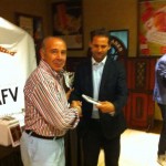 Fernando Giner, vicepresidente de la Federación, hizo entrega de un obsequio FEAFV a todos los representantes de las Asociaciones presentes en el Congreso, terminando con el presidente de los veteranos del Real Club Recreativo de Huelva, Isabelo Ramírez, anfitrión del evento. Dicho obsequio también se extendió al Consejero vicepresidente del club decano del fútbol español, José Luis Martín.