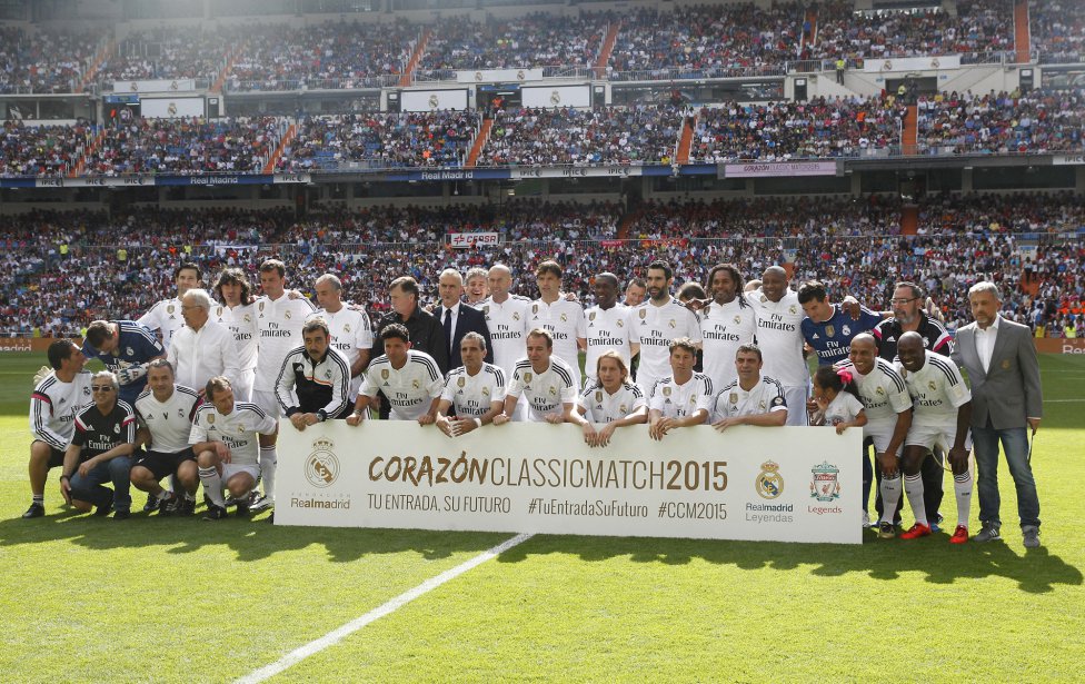 Madrid, 13 de junio de 2015. La sexta edición del Corazón Classic Match fue un éxito rotundo. El Santiago Bernabéu volvió a volcar con esta ya tradicional fiesta solidaria que, en esta ocasión, enfrentó al Real Madrid Leyendas con el Liverpool Legends. Y los aficionados –más de 70.000 personas llenaron de solidaridad las gradas del coliseum blanco- volvieron a disfrutar con el juego de varios de los veteranos que ayudaron a forjar la historia del club blanco. Y lo hicieron por una buena causa: los niños en riesgo de exclusión.