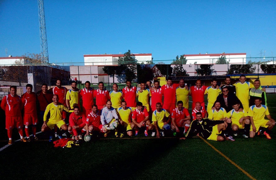 Sevilla, 11 de enero de 2015. Las Asociaciones de veteranos del Sevilla FC y del Real Betis Balompié participaron en el evento socio-deportivo a beneficio del club San Antonio de la Barriada sevillana de Torreblanca, disputando un cuadrangular junto al Calavera C.F. y el San Antonio.