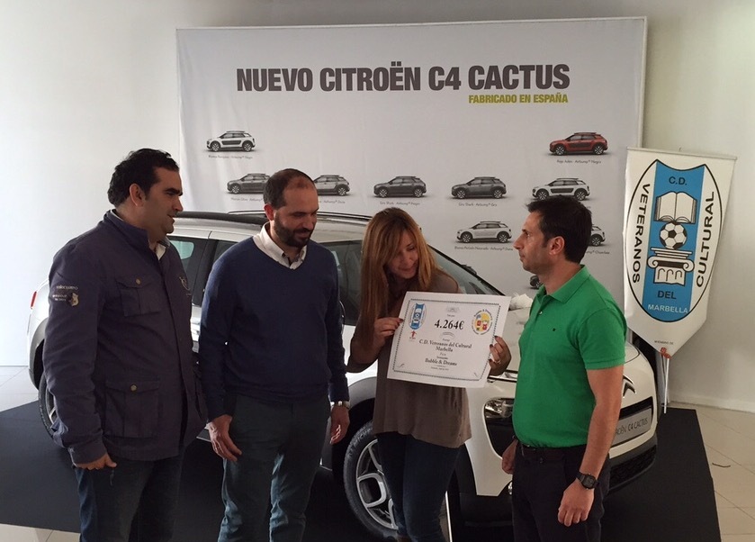 Marbella, 16 de abril de 2015. El Club Deportivo Veteranos del Cultural hizo hecho entrega de un cheque por valor de 4.264€ a la Asociación Bubbles & Dreams.
